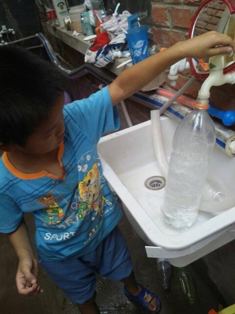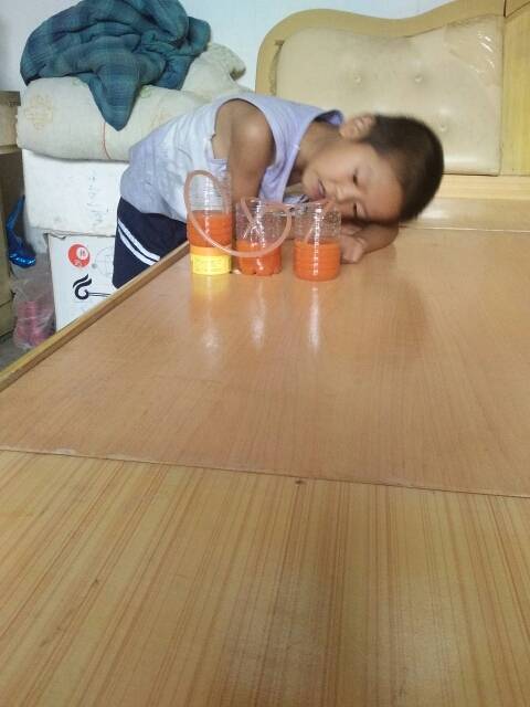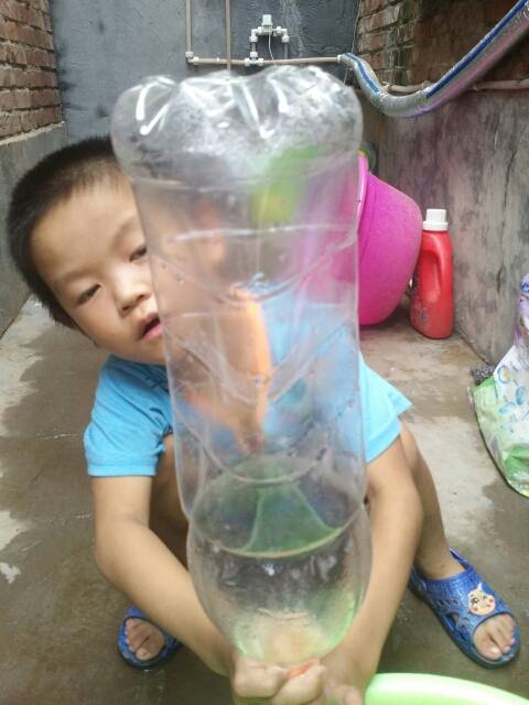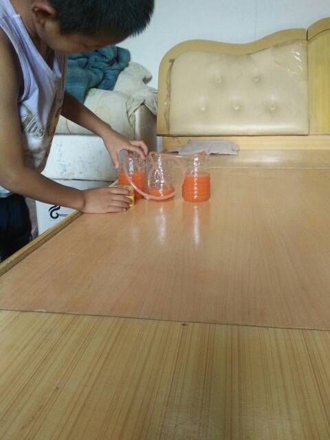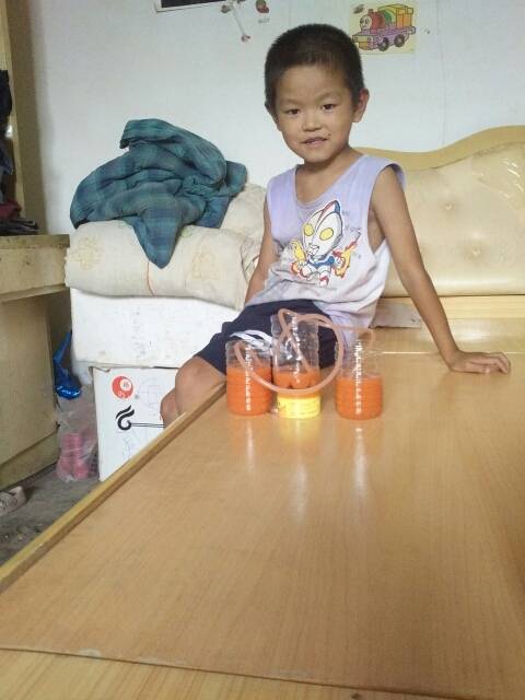 这个实验做了两次才成功的,让孩子知道失败了,找到原因才能成功,也知道了水通过吸管来平衡水位的。 |