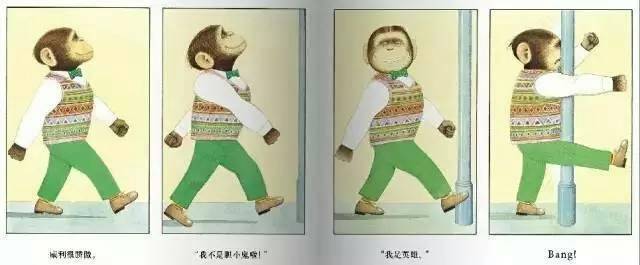 “噢,对不起!”威利对柱子说——这个结尾很妙,威利强壮了,不再被欺负了,但他仍然那么善良,那么有礼貌。这也无形中在提醒我们告诉孩子:即使你变强壮了,你也要依然保持你的善良和礼貌,而不是去转换角色变成了欺负他人的混小子。